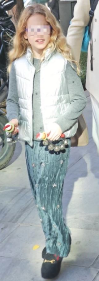 Όπως βλέπουμε η 8 ετών Μπιάνκα Κρασσά η οποία μοιάζει πολύ στη μητέρα της, φόρεσε ένα βελουτέ παντελόνι με γκρι πουλόβερ και αμάνικο μπουφάν. Αλλά το item που έκλεψε τις εντυπώσεις ήταν τα Gucci loafers της. Ακόμα κρατούσε κάποια μουσικά όργανα στα χέρια της.