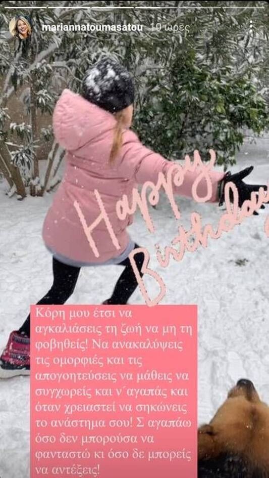 Αυτήν την φορά όμως και εν όψει Χριστουγέννων, η Μαριάννα Τουμασάτου έκανε την έκπληξη και δημοσίευσε μια υπέροχη φωτογραφία με την κόρη της, Χρυσηίδα. Μαμά και κόρη ποζάρουν μαζί και την στιγμή απαθανατίζει μια πολύ καλή κοινή τους φίλη.