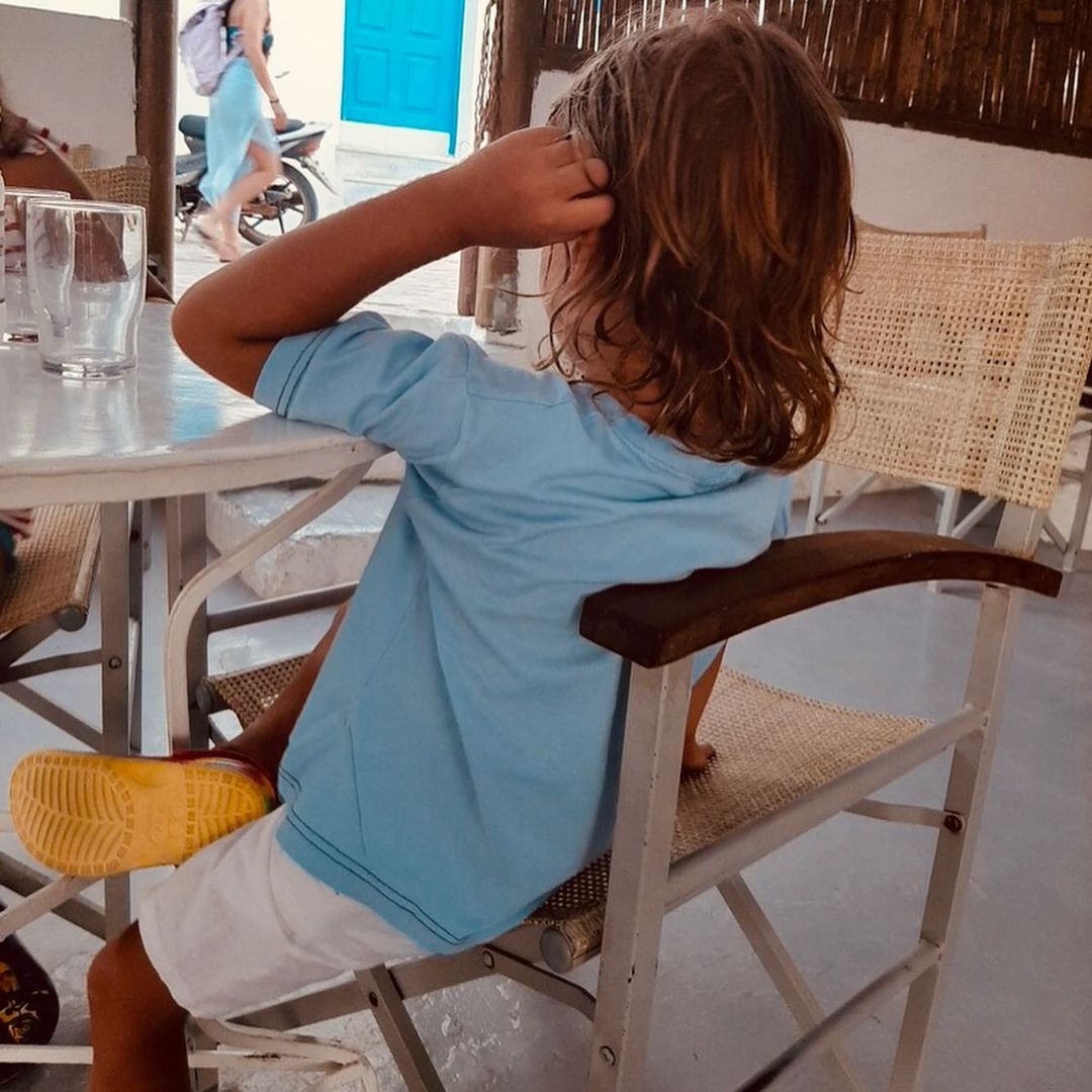 Στη φωτογραφία ο Αριώνας φαίνεται να κάθεται ανέμελα στην καρέκλα του σε καλοκαιρινές διακοπές, ενώ εντύπωση κάνουν τα ξανθά του μαλλιά.