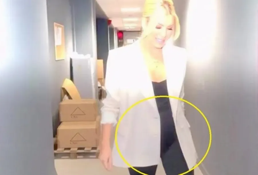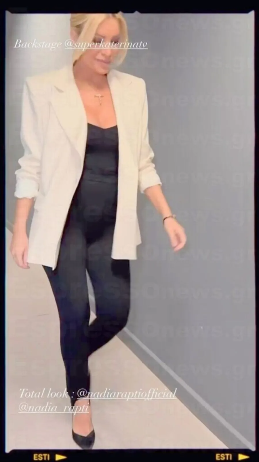 Ένα βίντεο από την προετοιμασία όμως την πρόδωσε καθώς ενώ περπατούσε το σακάκι κουνήθηκε και εμφανίστηκε η φουσκωμένη της κοιλίτσα.