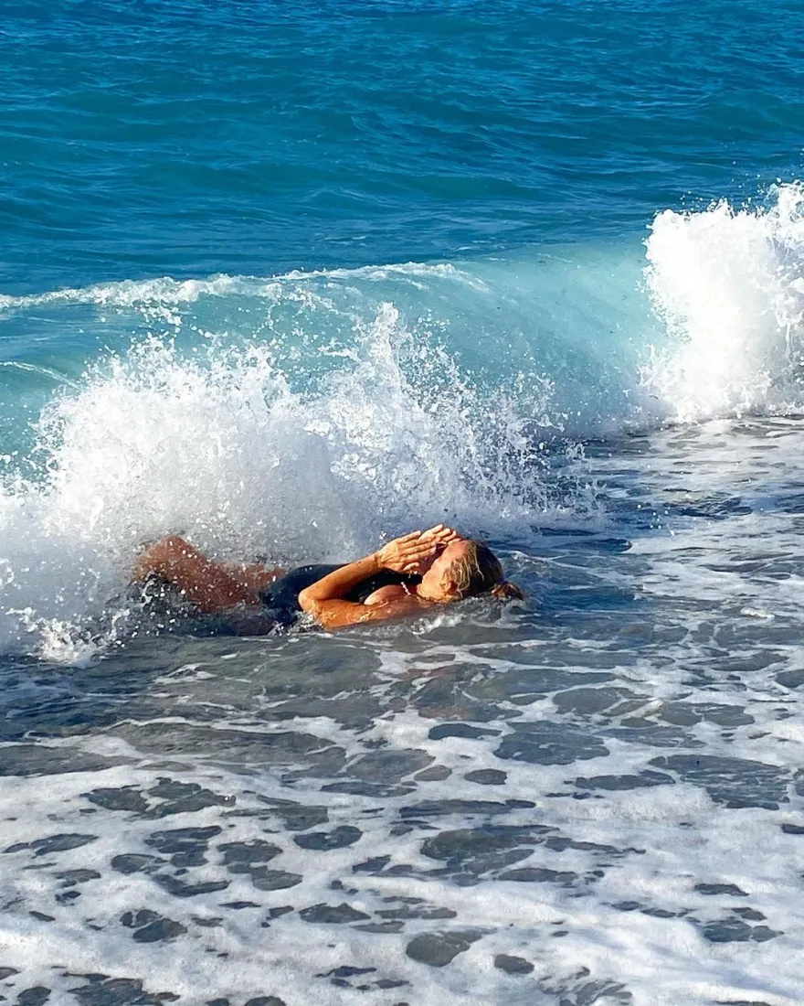 Όπως φαίνεται στην τελευταία της ανάρτηση, σε μια πρόσφατη επίσκεψή της στη θάλασσα, η Κατερίνα Καραβάτου κατέβαλε μεγάλη προσπάθεια για να ισορροπήσει στα κύματα, καθώς ετοιμαζόταν να κάνει τη βουτιά της.