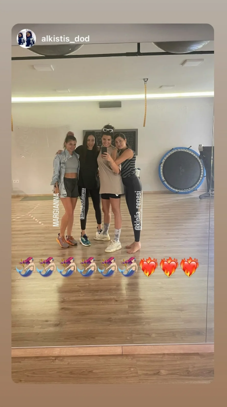 Η ηθοποιός πόζαρε με τις «partners in crime», ανάμεσά τους και η Κατερίνα Παπουτσάκη, σε μια ολόσωμη φωτογραφία που ανέδειξε τα αποτελέσματα της γυμναστικής τους. Η φωτογραφία αυτή έγινε repost από τη συνάδελφό της, με πολλούς να παρατηρούν την ομοιότητα τους και στο στυλ. Με παρόμοιο αθλητικό look, τα τέσσερα κορίτσια μεταδίδουν μόνο θετικά vibes.
