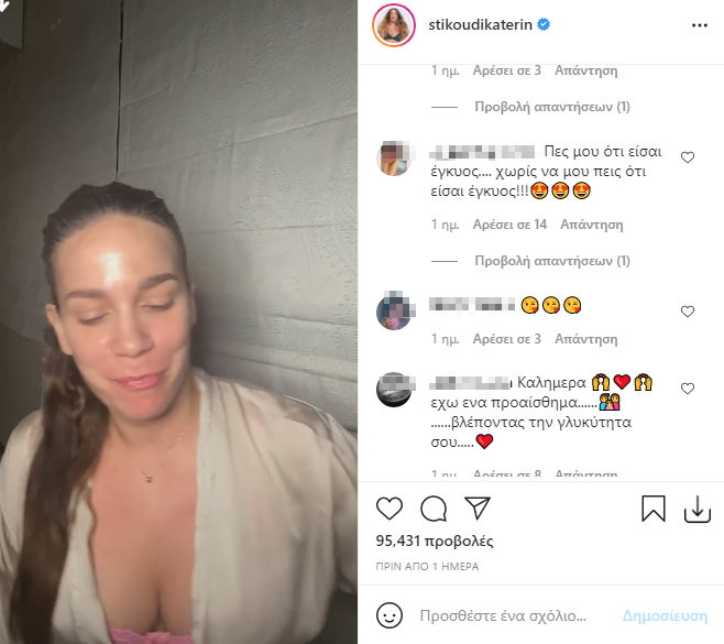 Εξάλλου, το νέο live βίντεο στον προσωπικό λογαριασμό στο instagram της Κατερίνας Στικούδη, στάθηκε αφορμή για νέα σχόλια περί εγκυμοσύνης. Συγκεκριμένα, εμφανίστηκε χωρίς μακιγιάζ, ενώ τα κοντινά πλάνα επιβεβαίωσαν για πολλούς την εγκυμοσύνη της, σπεύδοντας να σχολιάσουν τα επιπλέον κιλάκια της, ενώ έκαναν τις προβλέψεις τους για το φύλο που έχει το παιδάκι που περιμένει.