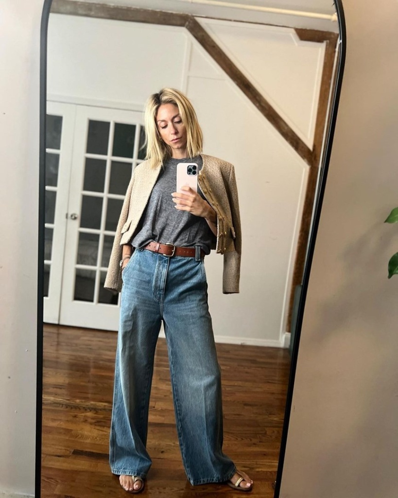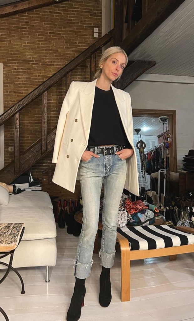 Μία ακόμα στιλιστική συμβουλή που αξίζει να ακολουθήσεις σύμφωνα με την ίδια είναι να συνδυάσεις το τζιν σου με πουκάμισο στο ίδιο ύφασμα και σακάκι, δημιουργώντας έτσι ένα πολύ εντυπωσιακό ντύσιμο. Εάν θέλεις να ανανεώσεις το στιλ σου με ένα εξίσου πρακτικό κομμάτι, ακολούθησε το παράδειγμα της Σοφίας Καρβέλα και επένδυσε σε ένα denim cargo παντελόνι.
