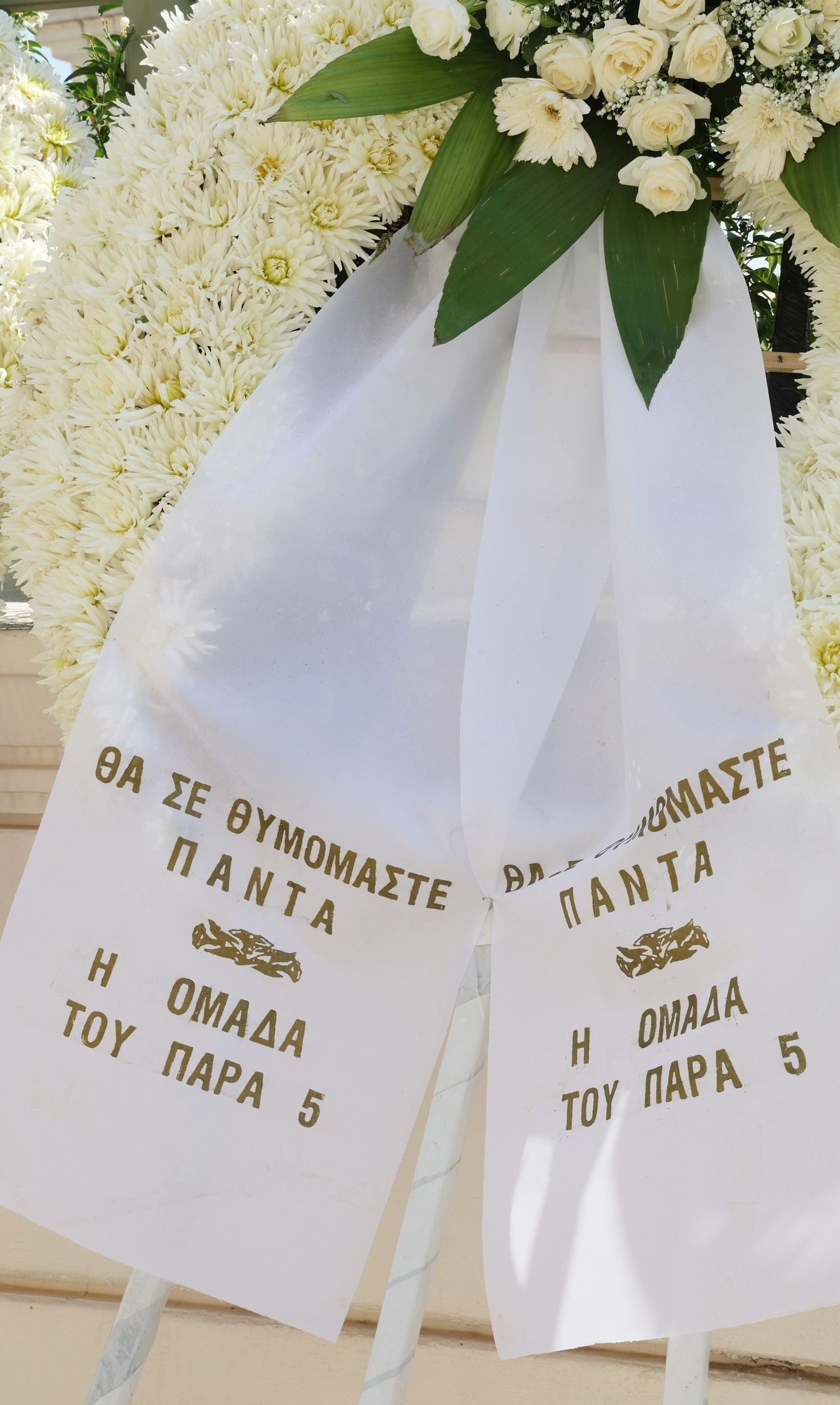 Η τελετή έλαβε χώρα στον Ιερό Ναό του Αγίου Νικολάου Ραγκαβά στην Πλάκα, παρουσία ανθρώπων από τον καλλιτεχνικό και ευρύτερο δημόσιο χώρο. Η ατμόσφαιρα ήταν φορτισμένη, με δάκρυα καθώς αποχαιρετούσαν έναν αγαπημένο τους φίλο και συνεργάτη.