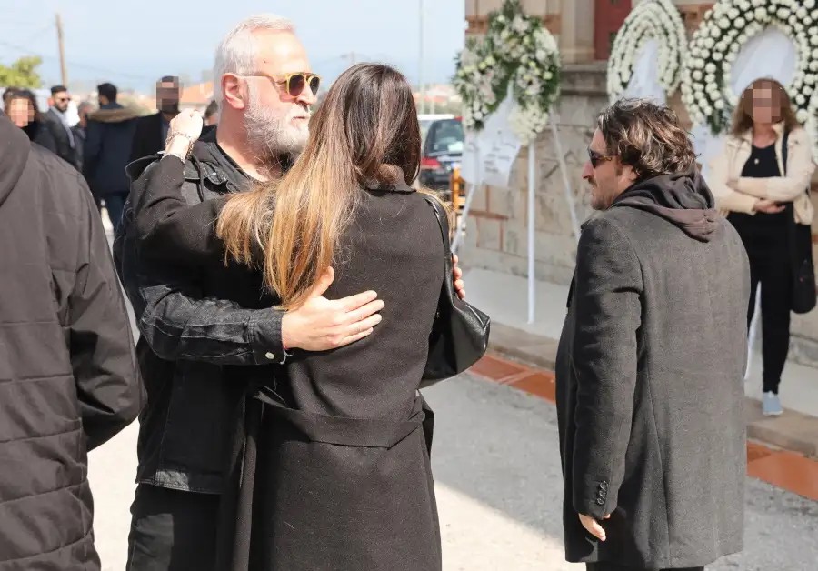 Ενώ η κάμερα κατέγραψε και τον Βασίλη Χαραλαμπόπουλο να βρίσκεται στο τελευταίο αντίο στην Καίτη Φίνου με τη σύζυγό του, Λίνα Πρίντζου και να ξεσπά σε λυγμούς έξω από την εκκλησία του Αγίου Σπυρίδωνα στο Αίγιο.