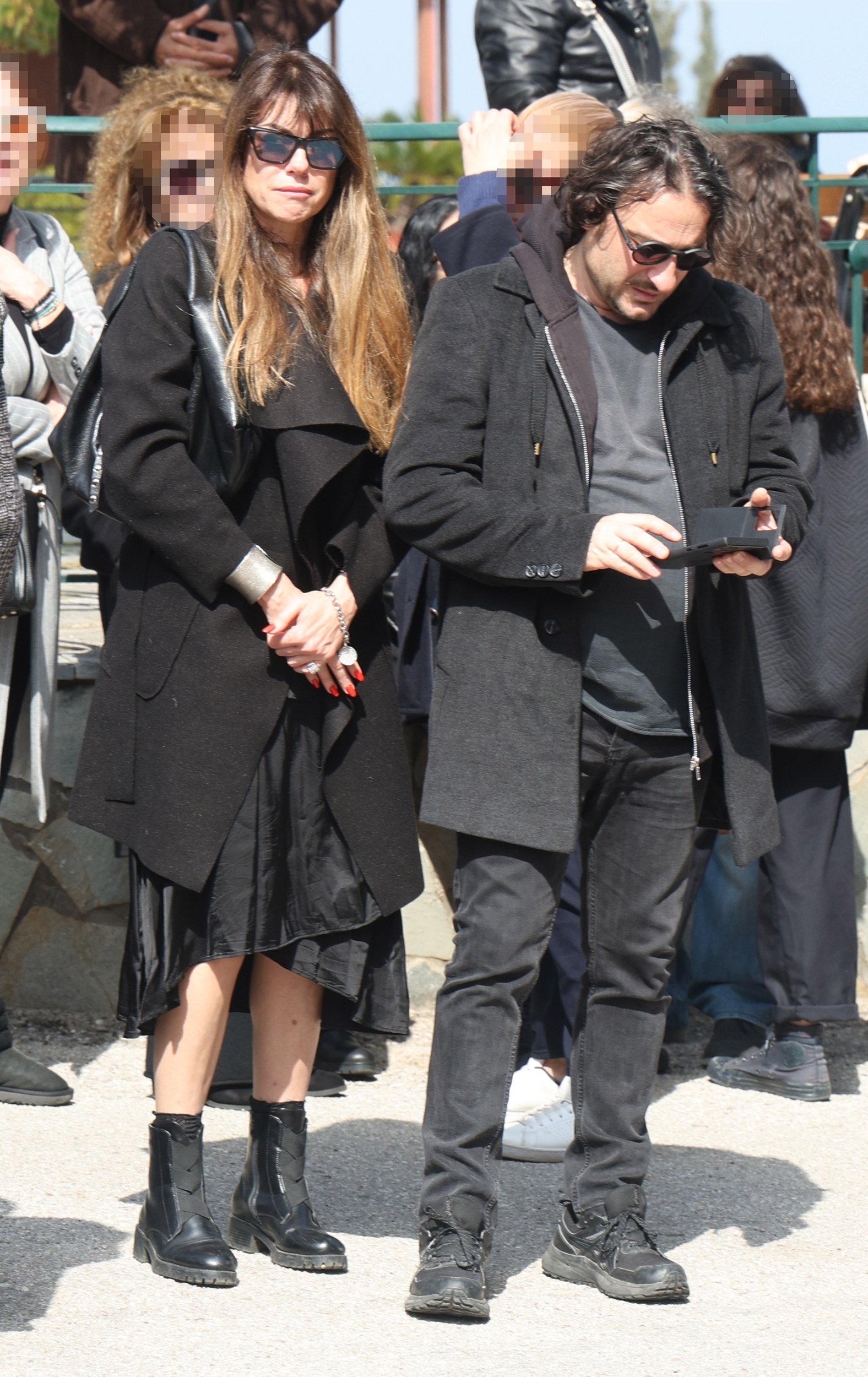 Κηδεία Καίτης Κωνσταντίνου: Δεν σταμάτησε λεπτό να κλαίει ο Βασίλης Χαραλαμπόπουλος έξω από την εκκλησία.