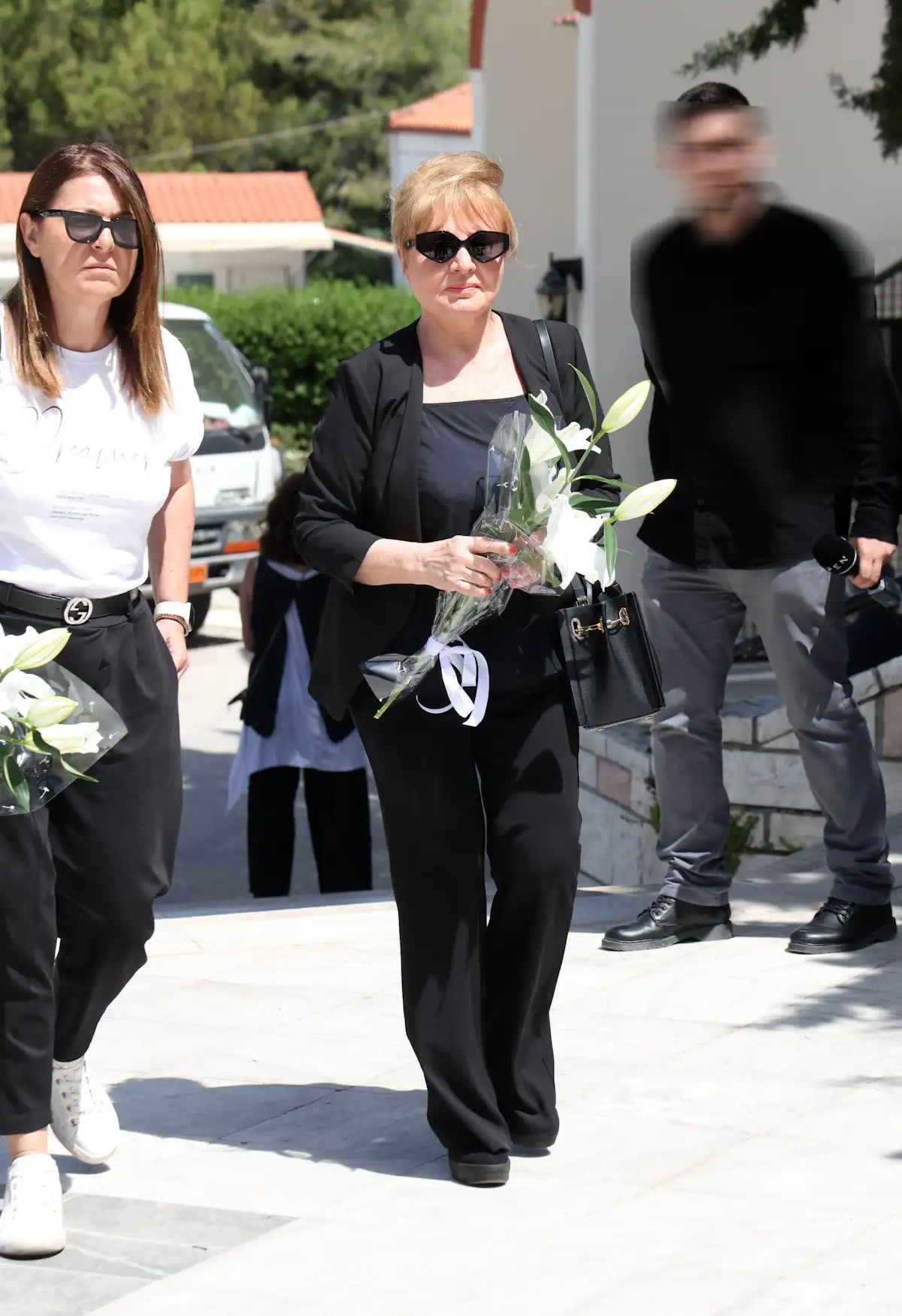 Ντυμένη στα λευκά και κρατώντας ένα κόκκινο τριαντάφυλλο, η γνωστή ηθοποιός θέλησε να αποχαιρετήσει τον σύντροφό της.