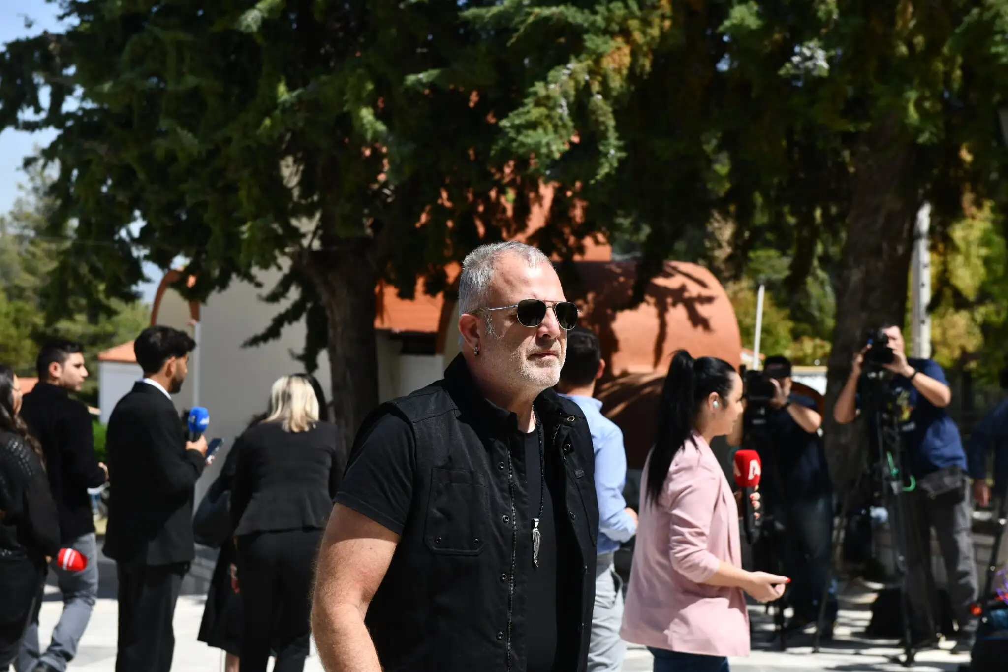 Συγγενείς, φίλοι και συνεργάτες αποχαιρετούν τον αγαπημένο ηθοποιό για τελευταία φορά σε κλίμα συγκίνησης.