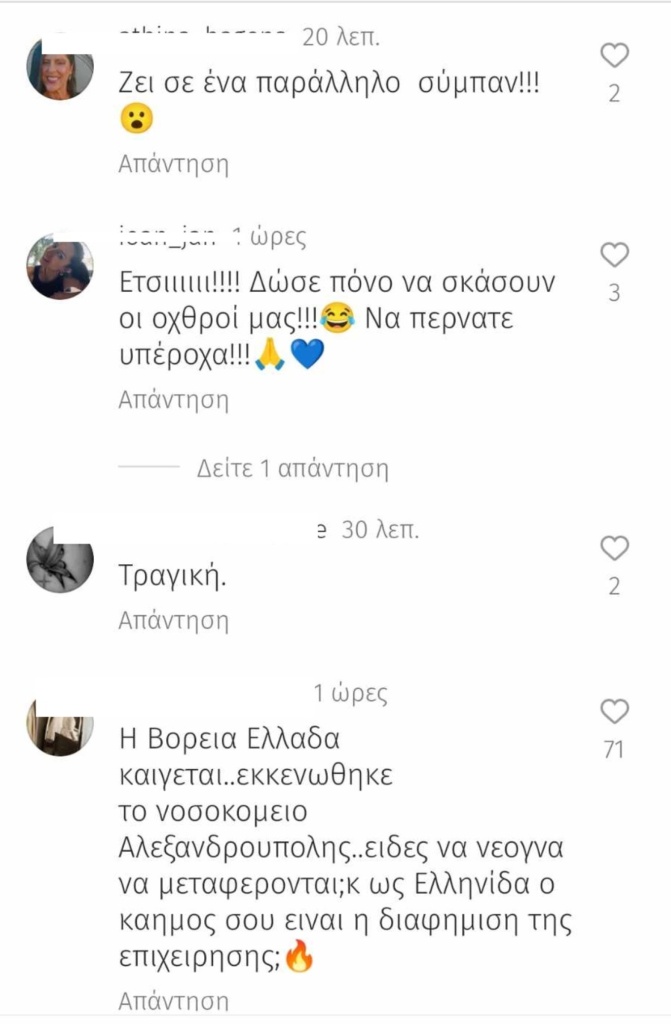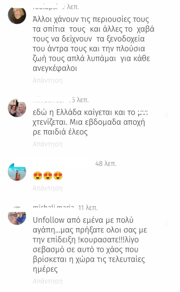 Αν και τα περισσότερα αρνητικά σχόλια έχουν σβηστεί πλέον από την ανάρτηση, οι ακόλουθοι έσπευσαν να εκφράσουν τη δυσαρέσκειά τους: