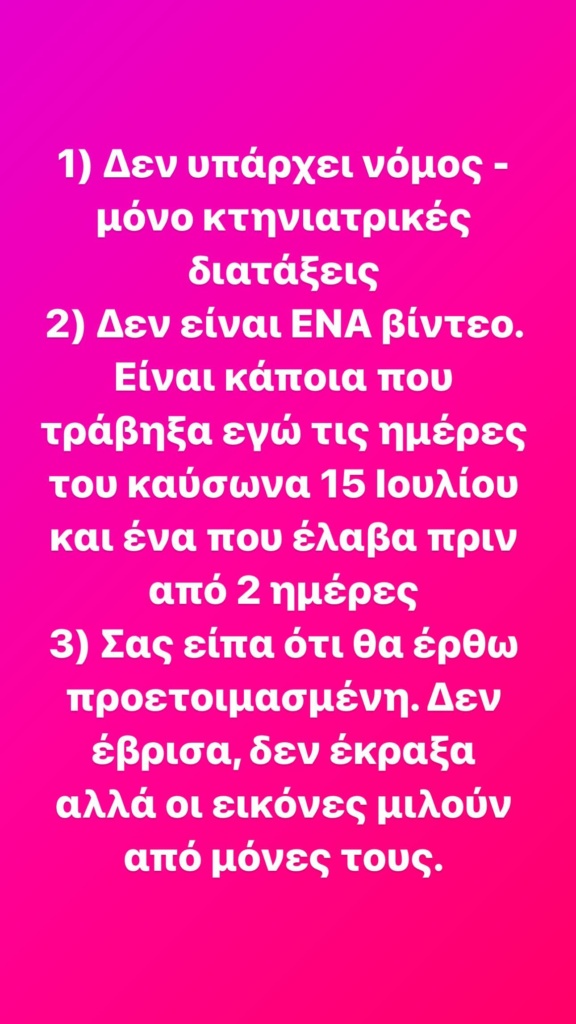 Μπράβο για το έργο της με τα αδέσποτα, αλλά επειδή δεν είμαστε επαγγελματίες φιλόζωοι, καλό θα είναι κάποιος να της εξηγήσει ότι τα θέματα για τα οποία ξεσήκωσε το σύμπαν για να φανεί η ίδια, οι Υδραίοι τα αντιμετωπίσαμε και λύσαμε προ δύο εβδομάδων όταν συνέβησαν!
