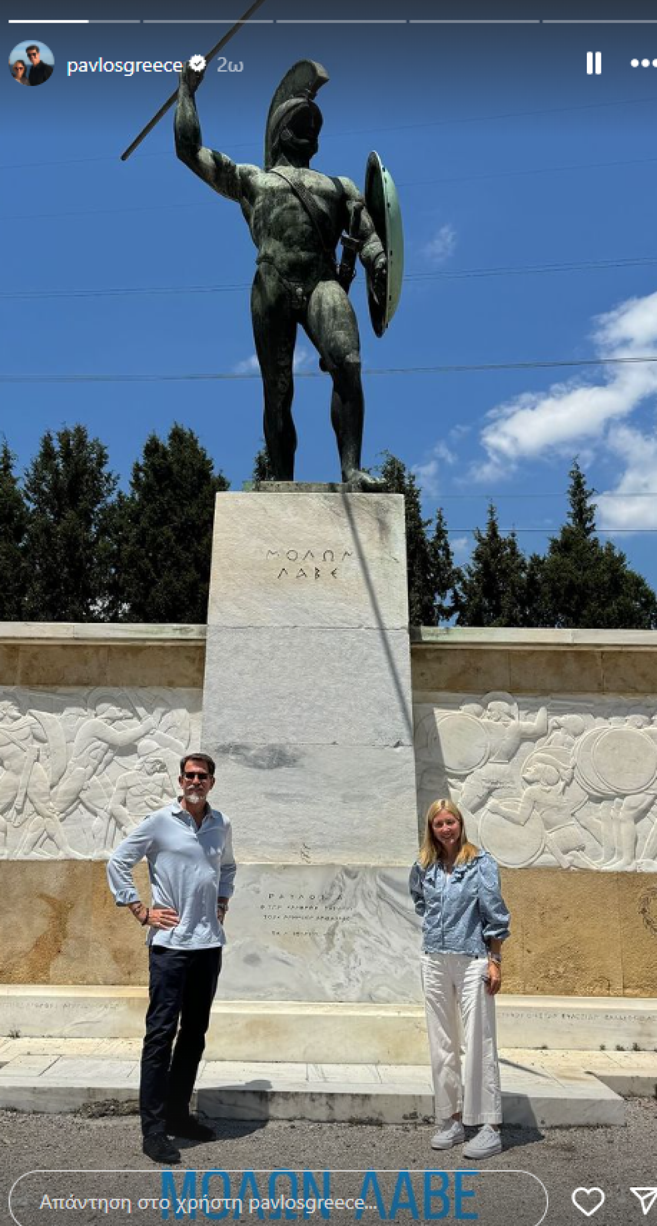 Την Κυριακή, η Μαρί Σαντάλ και ο Παύλος Γλύξμπουργκ απόλαυσαν έναν περίπατο και φωτογραφήθηκαν δίπλα στο άγαλμα του Λεωνίδα. Το ζευγάρι, γνωστό για την κομψότητα και τη χάρη του, εκμεταλλεύτηκε την ηλιόλουστη ημέρα για μια βόλτα, απαθανατίζοντας τη στιγμή με το εντυπωσιακό άγαλμα στο φόντο. Η εικόνα αυτή, που ανάρτησαν στα κοινωνικά δίκτυα, δείχνει τη βαθιά εκτίμησή τους για την ελληνική ιστορία και πολιτιστική κληρονομιά, προσδίδοντας μια αίσθηση σεβασμού και θαυμασμού για τον τόπο που επισκέπτονται.