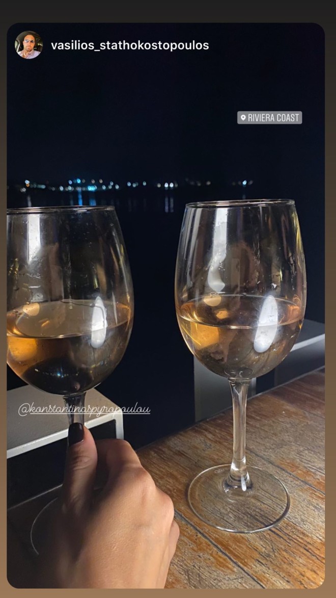 Έτσι και το βράδυ της Τρίτης, το ζευγάρι βρέθηκε σε γνωστό μαγαζί της παραλιακής και απόλαυσε το κρασί του με θέα τη θάλασσα.