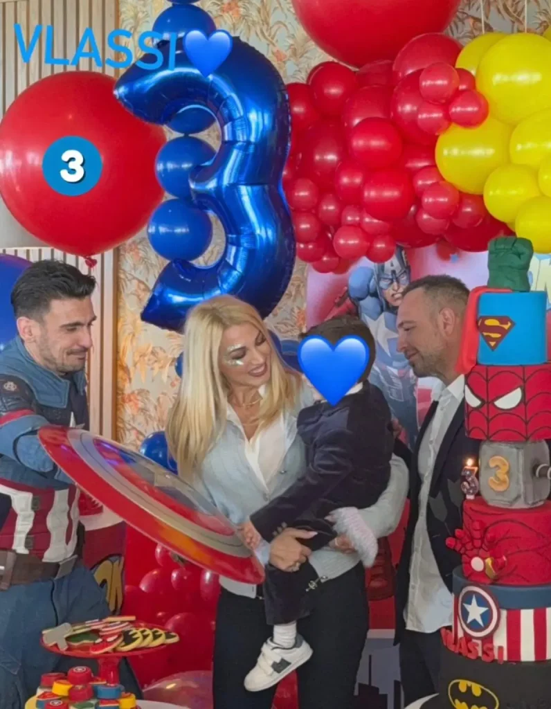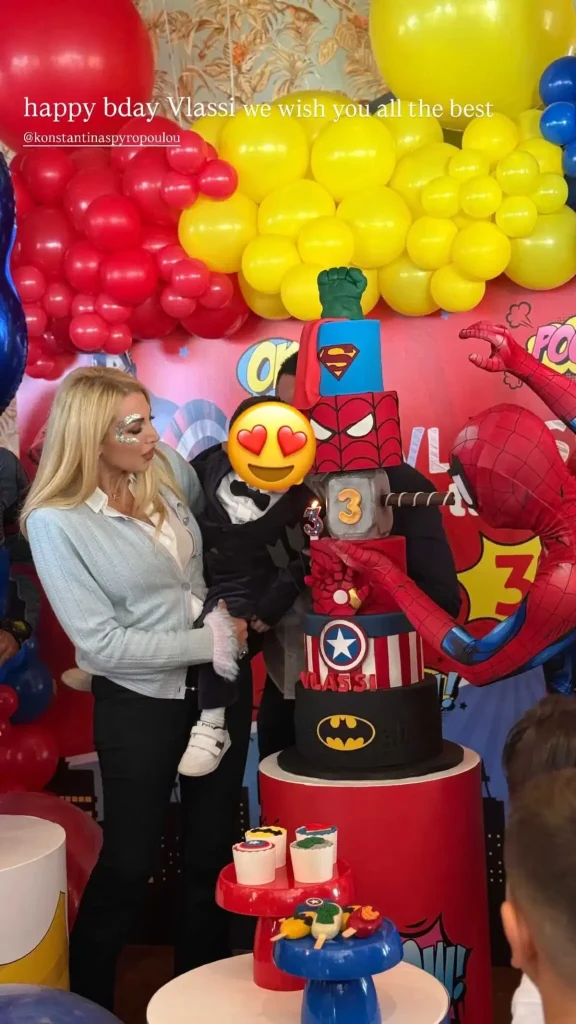 Η παρουσιάστρια μοιράστηκε στιγμιότυπα από το πάρτι μέσα από το Instagram, δείχνοντας βίντεο και φωτογραφίες από τη διακόσμηση, αλλά και τη μεγάλη τούρτα με τους αγαπημένους σούπερ ήρωες του γιου τους, που έκλεψε τις εντυπώσεις.