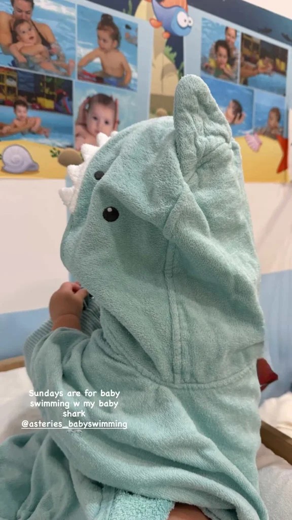 Η ίδια δημοσίευσε μια χαριτωμένη φωτογραφία του μικρού της στο προφίλ της, μέσα από τα μαθήματα κολύμβησης για βρέφη. Ο μικρός φαίνεται τυλιγμένος με ένα γαλάζιο μπουρνούζι σε σχήμα καρχαρία, ενώ στην ανάρτησή της η Αλεξάνδρα Νίκα έγραψε: «Οι Κυριακές είναι για baby swimming με τον μικρό μου καρχαρία», κάνοντας tag το κέντρο όπου πραγματοποιούνται τα μαθήματα.