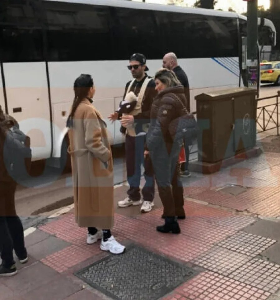 Σε αυτές βλέπουμε τον τραγουδιστή να κάνει βόλτα στο κέντρο της Αθήνας μαζί με τον γιο του, τον οποίο έχει στην αγκαλιά του μέσα στον μάρσιππο.