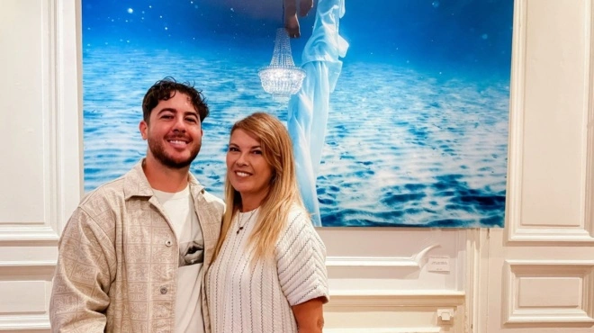 Φυσικά, από το πλευρό του δεν θα μπορούσε να λείπει η μητέρα του, Σοφία Αλιμπέρτη, η οποία και δεν έκρυψε τη συγκίνησή της όταν εκείνος πήρε το μικρόφωνο και έκανε μια ενδελεχή ξενάγηση στα έργα του.