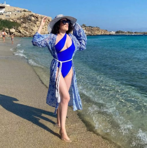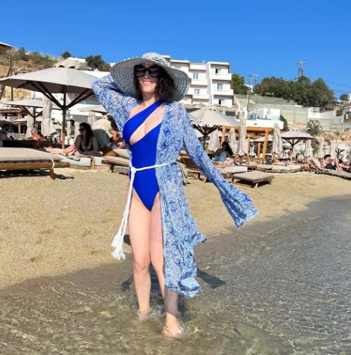 «Η απερίγραπτη χαρά μου όταν αργά το απόγευμα, που πέφτουν τα επικίνδυνα UV.. μπορώ και εγώ πλέον να απολαύσω λίγο τον ήλιο και τις όμορφες παραλίες της χώρας μας», έγραψε στη λεζάντα της ανάρτησης, που τη βλέπουμε να φορά ένα μπλε ολόσωμο μαγιό, με ένα μακρύ παρεό επίσης στις αποχρώσεις του και ένα εντυπωσιακό καπέλο.