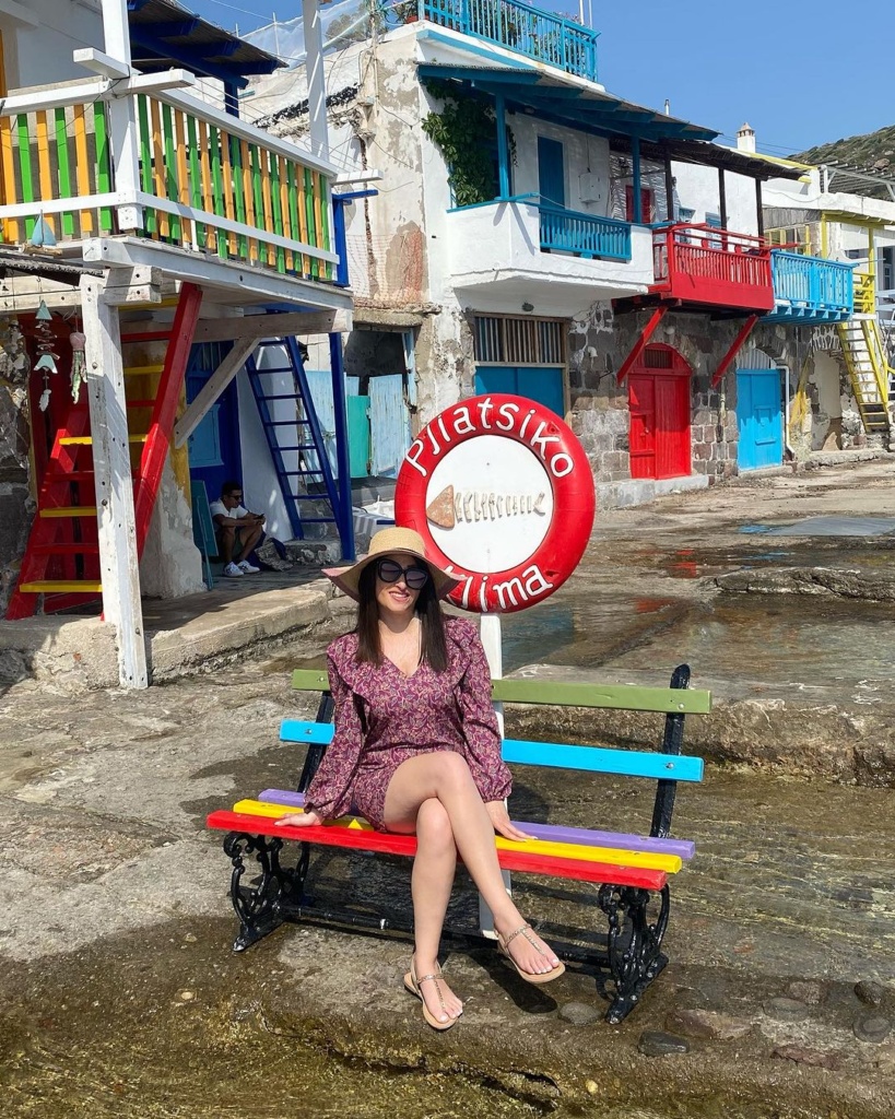 Μετά την Μύκονο, η Ιωάννα Παλιοσπύρου ταξίδεψε στην Μήλο, όπου επισκέφθηκε μαγευτικές παραλίες και έκανε βόλτες.