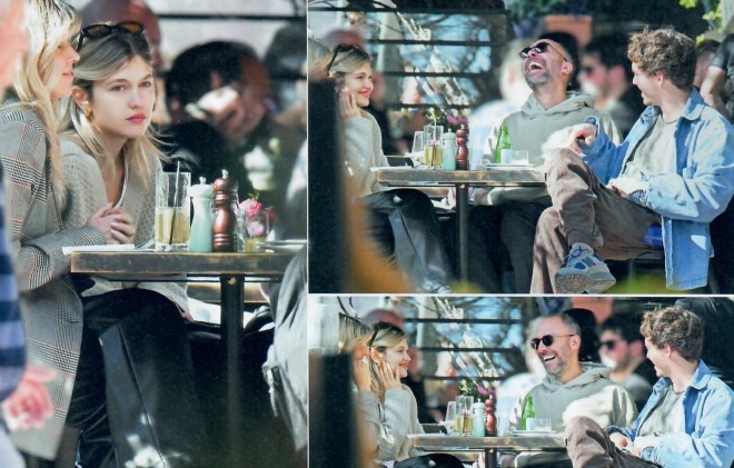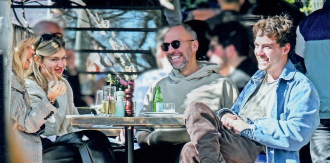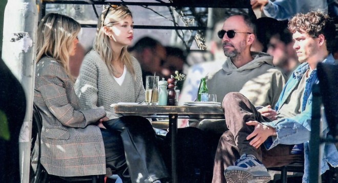 Το ζευγάρι απαθανατίστηκε το απόγευμα του Σαββάτου 8 Μαρτίου στο Queen Bee στο Κολωνάκι, όπου γευμάτισαν μαζί με την παρέα τους, τη σχεδιάστρια μόδας Βάσια Κωσταρά (αριστερά) και τον φωτογράφο σύντροφό της, Γιάννη Βλάχο (στο κέντρο).