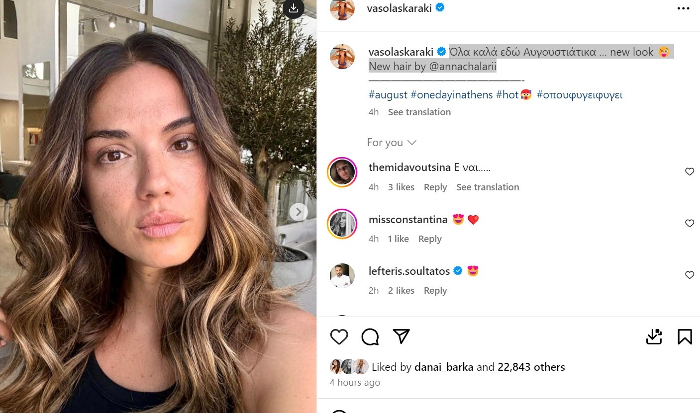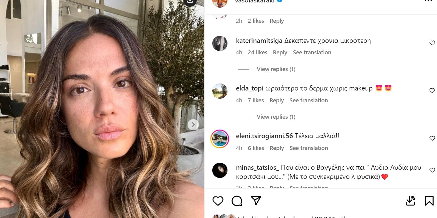 Συγκεκριμένα, η ηθοποιός, η οποία τους τελευταίους μήνες είχε υιοθετήσει ένα σκούρο καφέ χρώμα, επέλεξε τώρα να φωτίσει τα μαλλιά της, προσδίδοντας έτσι μια πιο λαμπερή και ανανεωμένη εικόνα στο πρόσωπό της. Με αυτή την αλλαγή, η Βάσω Λασκαράκη έφερε φρέσκο αέρα στην εμφάνισή της, προκαλώντας τον θαυμασμό και την αδημονία των θαυμαστών της για τη νέα της εικόνα.
