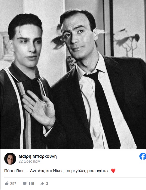 Η Μαρία Μπάρκουλη, χήρα του Ανδρέα, μοιράστηκε πρόσφατα στα social media μια συγκινητική φωτογραφία, η οποία αποτυπώνει την ομοιότητα του Νίκου με τον πατέρα του. Το κολάζ περιλαμβάνει μια παλιά φωτογραφία του Ανδρέα και μια πρόσφατη του Νίκου, δείχνοντας τη μαγική αυτή σύνδεση.