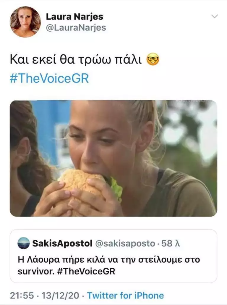 Η παρουσιάστρια μη χάνοντας το χιούμορ και την καλή της διάθεση δεν δίστασε, μάλιστα, να απαντήσει δημόσια. “Η Λάουρα πήρε πάλι κιλά να την στείλουμε στο Survivor”, έγραφε χαρακτηριστικά το σχόλιο με εκείνη να απαντά: “Και εκεί θα τρώω πάλι”.