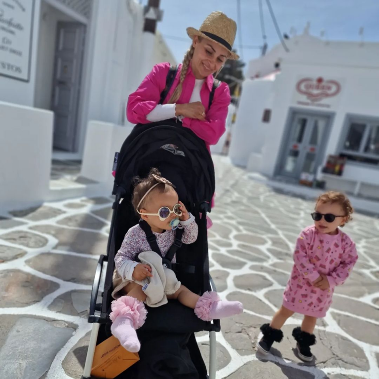 Συγκεκριμένα, στην πρώτη φωτογραφία βλέπουμε τον Λευτέρη Πετρούνια και τη γυναίκα του Βασιλική να ποζάρουν αγκαλιά ενώ στις άλλες βλέπουμε τους δύο γονείς να ποζάρουν με τις κορούλες τους.
