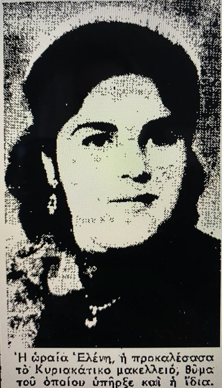 Το πρωινό της 9ης Αυγούστου 1959, ο Γρηγόρης φεύγει νωρίς για την Αθήνα, αφήνοντας την Ελένη στο σπίτι. Η επιστροφή του, ωστόσο, γίνεται νωρίτερα από το αναμενόμενο, γύρω στη 1:30 το μεσημέρι. Μπαίνοντας στο σπίτι, έρχεται αντιμέτωπος με ένα σοκαριστικό θέαμα: την Ελένη και τον Βασίλη σε ερωτικές περιπτύξεις. Σε μια έκρηξη οργής, ο Γρηγόρης αρπάζει ένα μαχαίρι από την κουζίνα και τραυματίζει θανάσιμα την Ελένη στον λαιμό. Παρά την προσπάθειά της να φτάσει στο σπίτι του πατέρα της για βοήθεια, καταρρέει και πεθαίνει μέσα σε μια λίμνη αίματος.