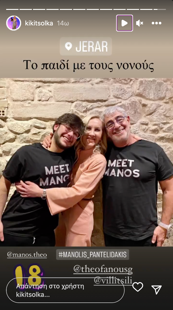 Ανάμεσα σε αυτές τις φωτογραφίες, ήταν και αυτή που δημοσίευσε η Κική Τσόλκα στον προσωπικό της λογαριασμό στο Instagram. Η PR manager που έχει βαφτίσει τον γιο του μουσικοσυνθέτη μαζί με τον Μανώλη Παντελιδάκη, ανήρτησε στα stories της μία τρυφερή φωτογραφία μαζί τους.