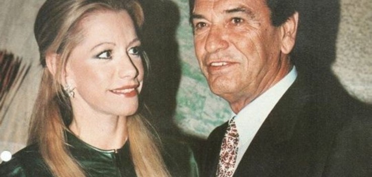 τα σκαλιά της εκκλησίας με τον σύντροφό της, επιχειρηματία Βύρωνα Βασιλειάδη.