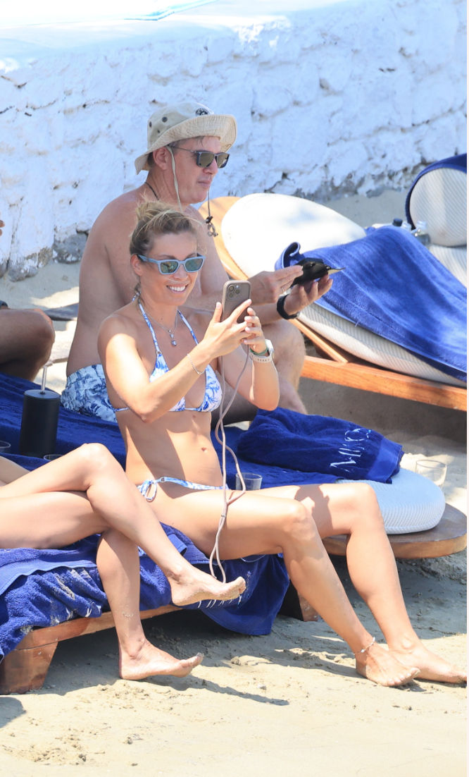 Ο φωτογραφικός φακός την κατέγραψε στην παραλία, χαμογελαστή και ήρεμη, να κάνει ηλιοθεραπεία με μπικίνι δίπλα στο κύμα. Μαζί της ήταν ο σύζυγός της, Λέων Πατίτσας, και τα τρία τους παιδιά, με τα οποία το ζευγάρι παραμένει αχώριστο.