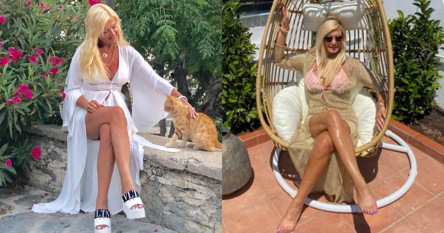 Ειδικότερα, συνοδευόμενη από τον επιστήθιο φίλο της, Νίκο Παπαδάκη, έκαναν βουτιές σε ιδιωτική πισίνα στα νότια προάστια.