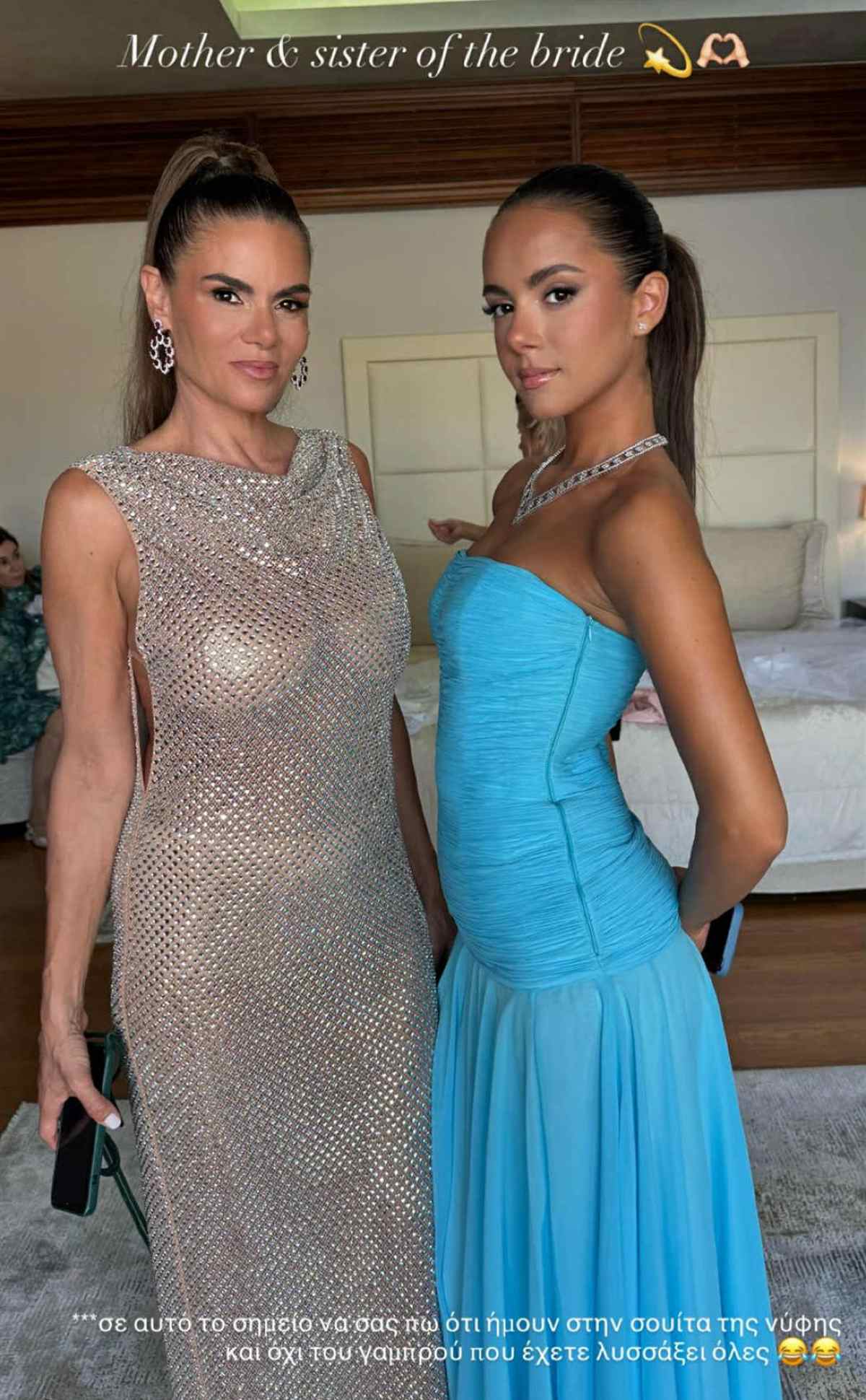 Ανάμεσα στις λαμπερές εμφανίσεις στο γάμο της Αλεξάνδρας Νίκα και του Κωνσταντίνου Αργυρού λοιπόν, ήταν η μητέρα της νύφης, Μιράντα Πατέρα, η οποία επέλεξε να φορέσει ένα λαμπερό ημιδιάφανο φόρεμα, ενώ από την άλλη, η αδερφή της νύφης, φόρεσε ένα στράπλες γαλάζιο φόρεμα. Μαμά και κόρη ήταν άκρως εντυπωσιακές.