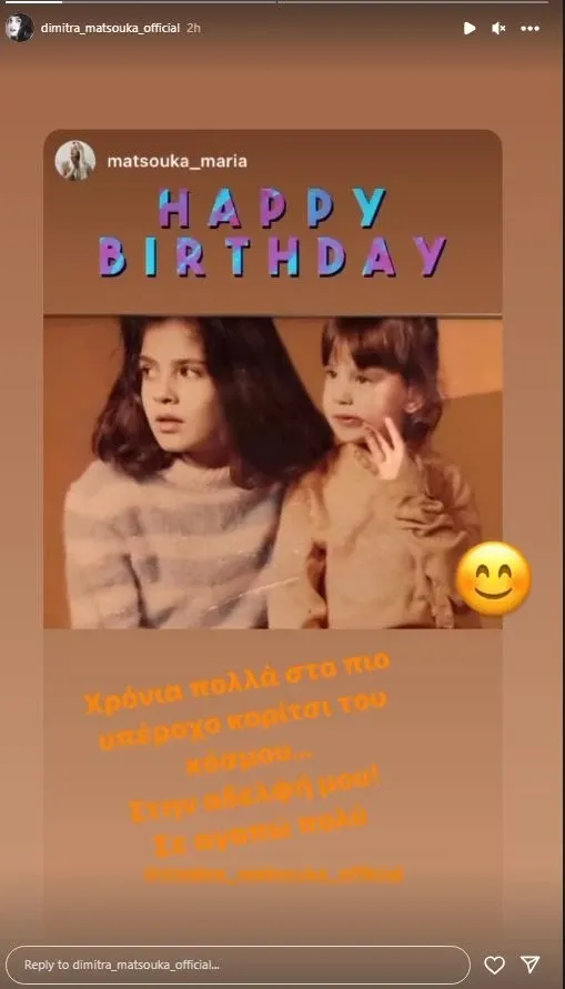 «Χρόνια πολλά στο πιο υπέροχο κορίτσι του κόσμου… Στην αδελφή μου σε αγαπώ πολύ», έγραψε η Μαρία Ματσούκα στη λεζάντα των φωτογραφιών.