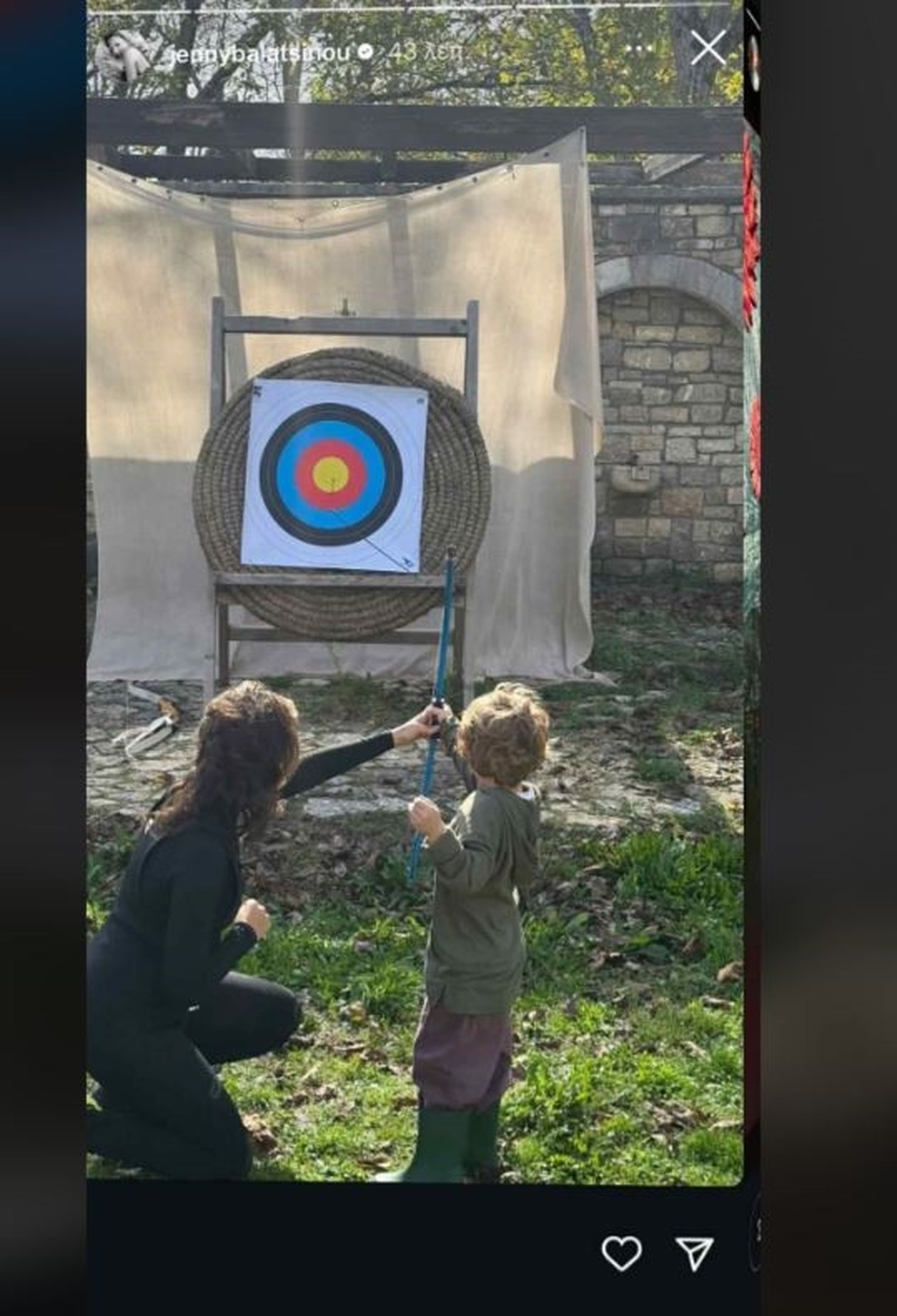 Η Τζένη Μπαλατσινού μοιράστηκε κάποιες φωτογραφίες από το οικογενειακό ταξίδι τους στα Καλάβρυτα και ξεχωρίζει το στιγμιότυπο, όπου ο Παναγιώτης Αντώνιος κάνει τοξοβολία. Ο μικρός φαίνεται να είναι ντυμένος με φόρμες και να φορά ένα ζευγάρι πράσινες γαλότσες.
