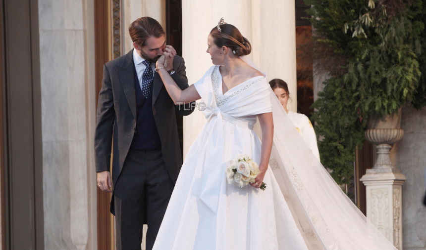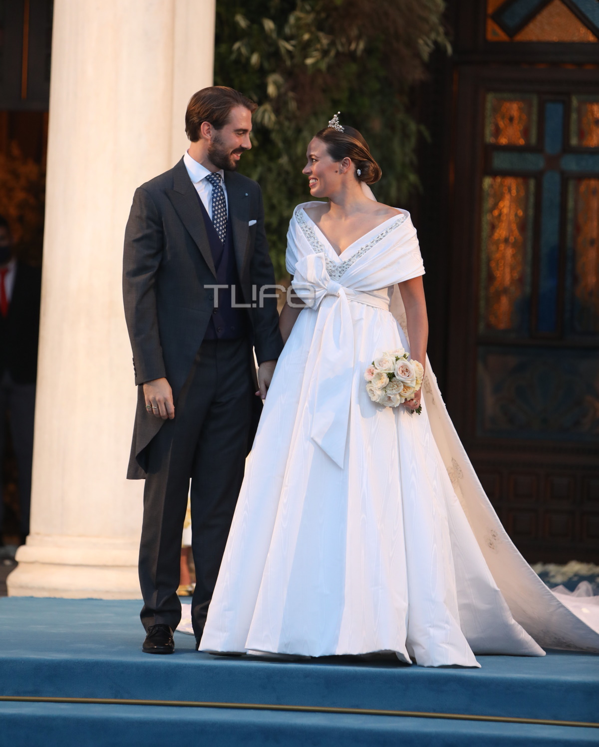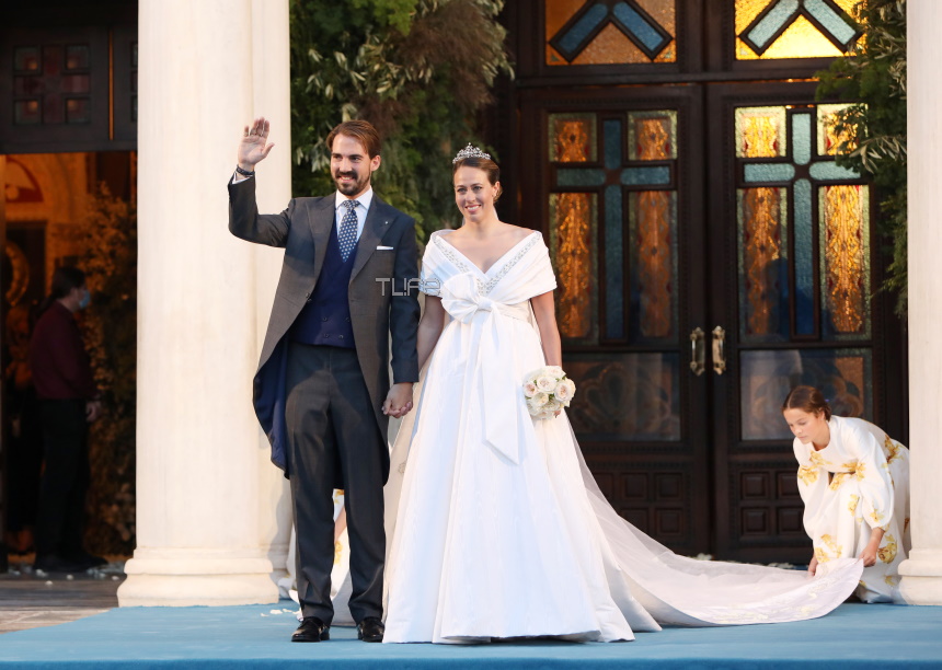 Την παράσταση έκλεψε το κομψό νυφικό της Νίνα Φλορ όπως και η τιάρα της, ένα κειμήλιο της μητέρας του Φιλίππου, Άννας Μαρίας.
