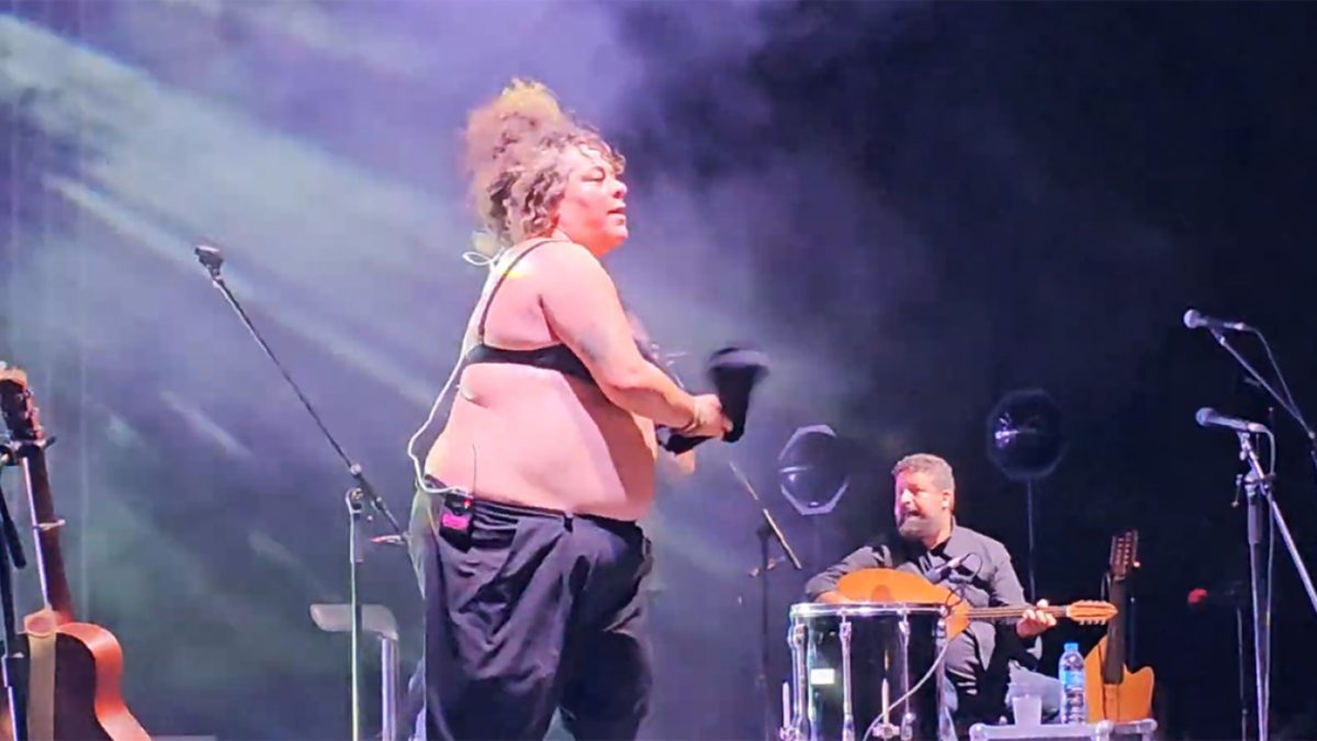 Η εντυπωσιακή της κίνηση κατά τη διάρκεια μιας πρόσφατης συναυλίας στο Θέατρο Βράχων, όπου αποφάσισε να απομακρύνει τη μπλούζα της επί σκηνής, έχει προκαλέσει ποικιλία αντιδράσεων που κυκλοφορούν ευρέως στο διαδίκτυο.