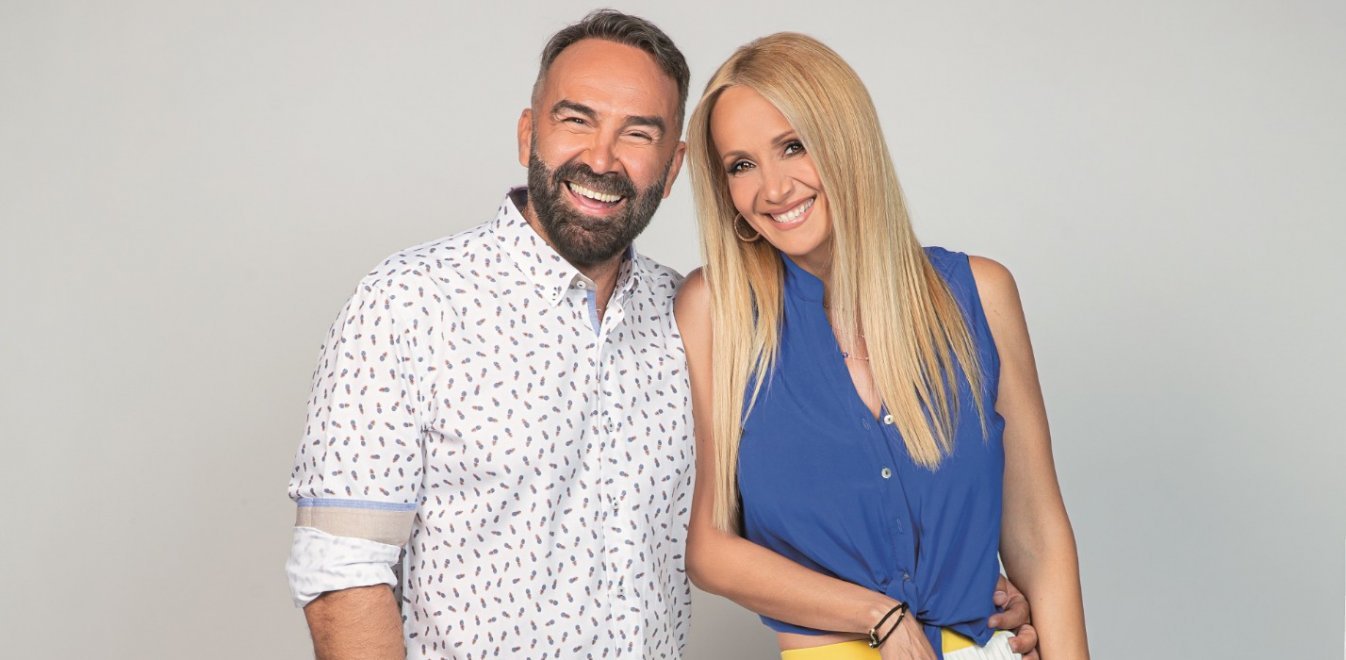 Ο Γρηγόρης Γκουντάρας, μαζί με τη σύζυγό του, Ναταλί Κάκκαβα και τους δύο γιους τους, Οδυσσέα και Μάρκο, βρίσκονται στη Μελίβοια Λάρισας.