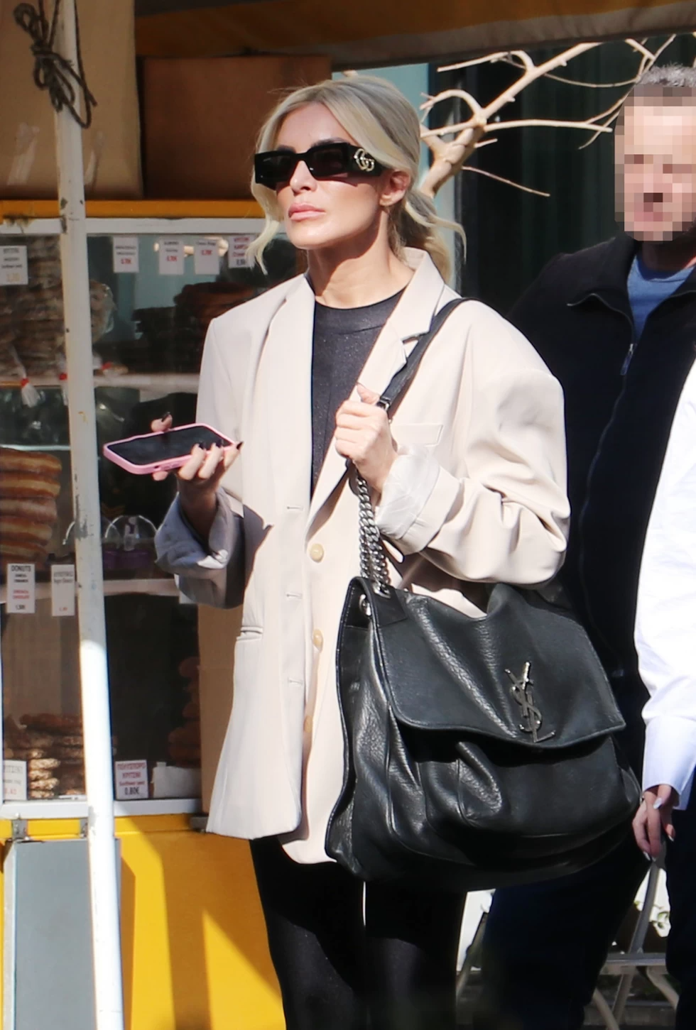 Ειδικότερα, η οικοδέσποινα της εκπομπής «Super Κατερίνα» φόρεσε ένα μαύρο σύνολο, με κολάν από lycra, από πάνω πρόσθεσε ένα blazer σε μπεζ τόνο και εντυπωσιακά booties, ενώ την εμφάνισή της ολοκλήρωσε μία oversized Saint Laurent τσάντα.