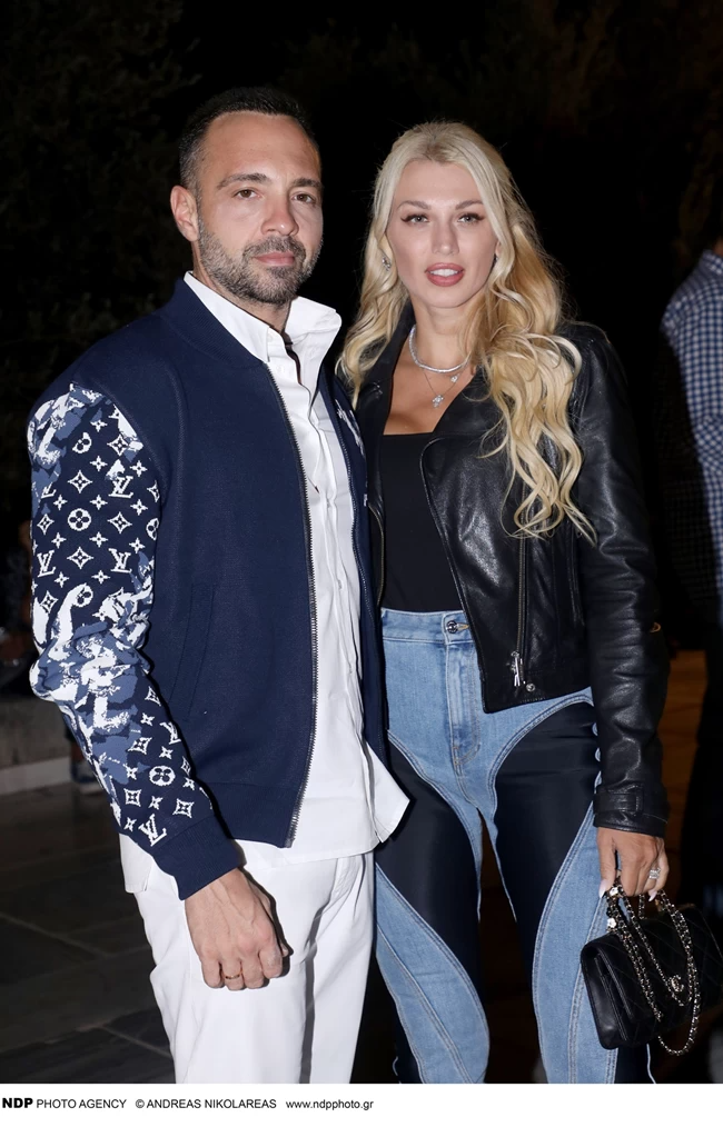 Από την πλευρά του, ο επιχειρηματίας φόρεσε λευκό πουκάμισο και λευκό παντελόνι και τα συνδύασε με σνίκερς και τζάκετ Louis Vuitton.