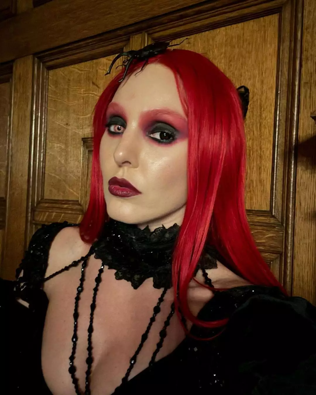 Με κόκκινα μαλλιά, έντονο μακιγιάζ, φακούς επαφής και το κατάλληλο ντύσιμο, η τραγουδίστρια συγκέντρωσε πολλά likes και σχόλια από τους ακόλουθούς της.