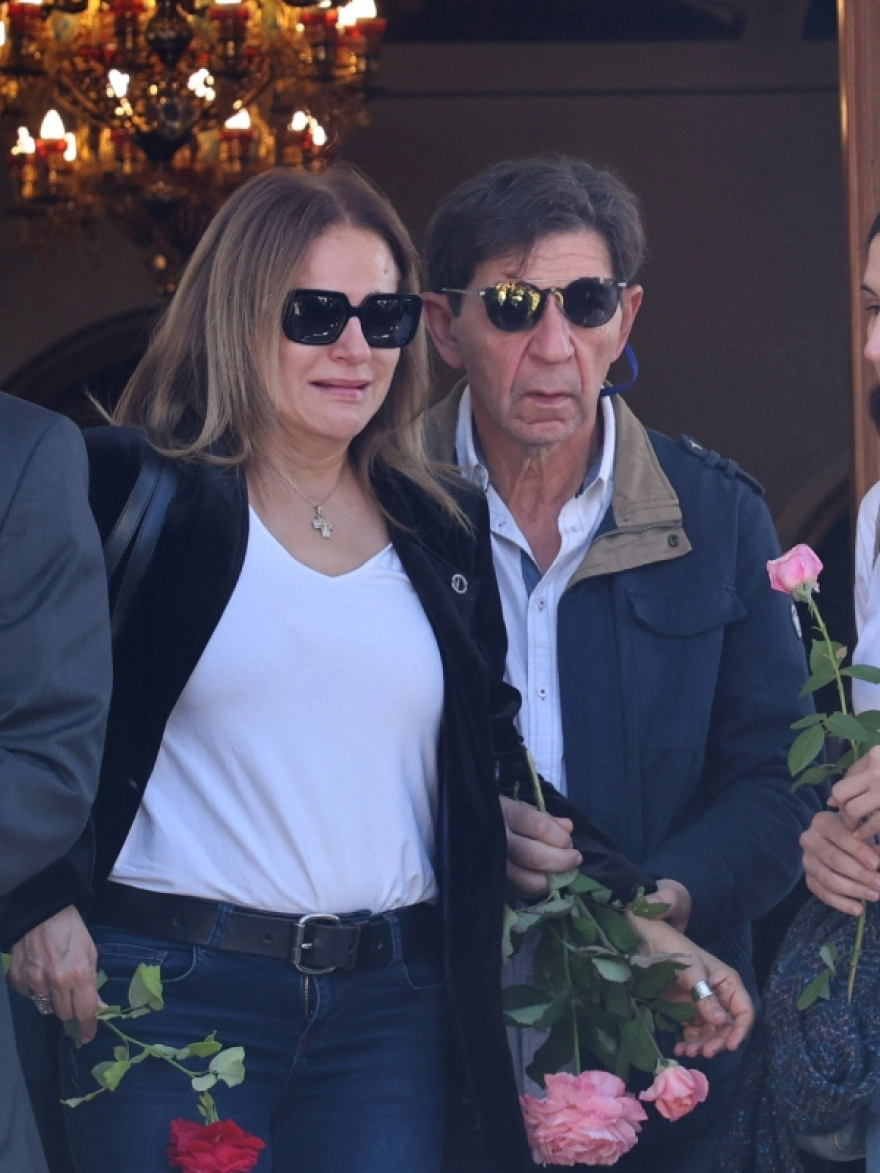 Ειδικότερα, η ηθοποιός, συνοδευόμενη από τον σύζυγό της, Γεράσιμο Σκιαδαρέση και την οικογένειά της, αποχαιρέτησε την φίλη και συνάδελφό της, κρατώντας ένα κόκκινο τριαντάφυλλο και φορώντας μαύρα γυαλιά.