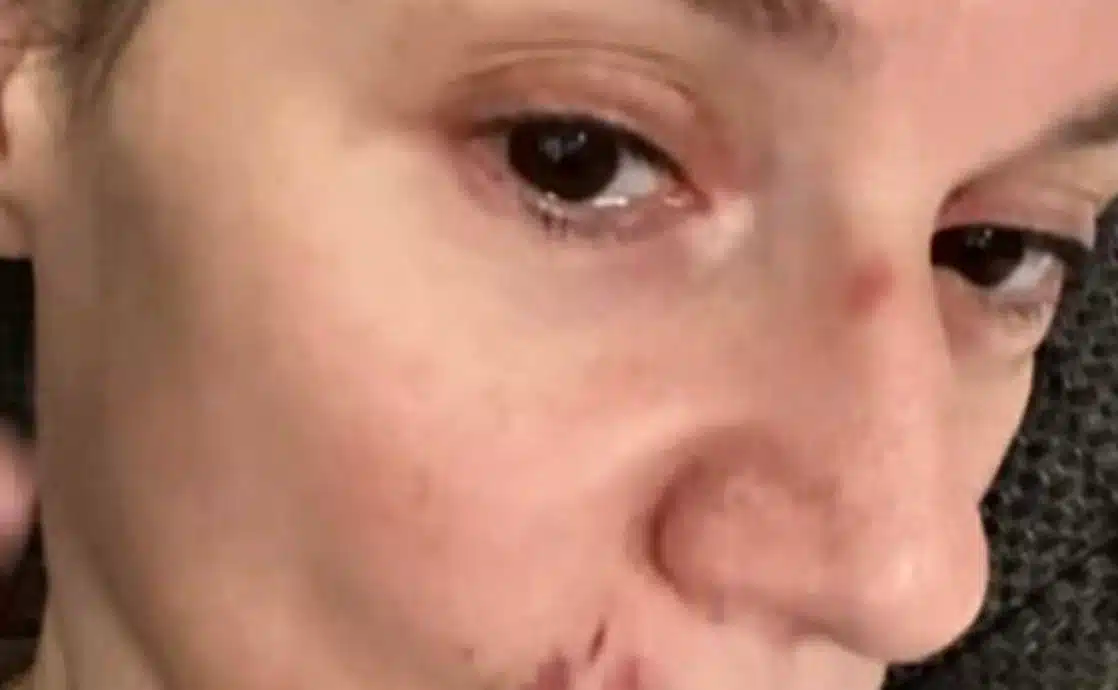 Το χτύπημα ήταν έντονο, με αποτέλεσμα να εμφανιστεί άμεσα μελανιά γύρω από το μάτι, ενώ τραυματίστηκαν και τα χείλη της.