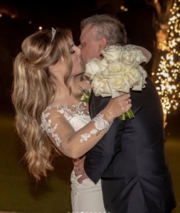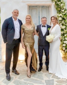 “Αυτός ο γάμος ήταν πραγματικά ξεχωριστός! Παντρεύτηκαν δύο άνθρωποι πραγματικά πάρα πολύ ερωτευμένοι! Για εμένα προσωπικά ήταν η τρίτη φορά που παντρεύω και γίνομαι κουμπάρα. Όμως εδώ είμασταν πέντε κουμπάροι, ζωή να έχουμε! Το ζεύγος Μιχάλη και Μαρία Ζαμπίδη, (έρχεται η σειρά τους σε λίγες ημέρες) και οι επιχειρηματίες Τάκης Τσακίρης και Κωνσταντινος Κάτσικας. Ο γαμπρός έφτασε στο island συνοδευόμενος με δύο σκάφη και τους κουμπάρους, ενώ η νύφη παραδοσιακά με τους γονείς και τις κουμπάρες. Περάσαμε πανέμορφα και ο καιρός ήταν πραγματικός σύμμαχος αφού τελικά δεν έριξε σταγόνα! Μετά τον γάμο το ζευγάρι δεν πήγε παραδοσιακά μόνο του για γαμήλιο ταξίδι… αλλά κρουαζιέρα με όλους τους κουμπάρους(σύντομα θα επανέλθω με υλικό)! Σας εύχομαι να έχετε υγεία αγάπη και ευημερία σε όλη σας την κοινή πλέον πορεία. Θεοφανώ & Διονύσης”.