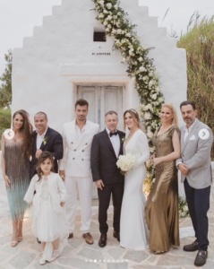 Κουμπάρα στο πλευρό του συντρόφου της έγινε η Μάγδα Τσέγκου, σε έναν γάμο που μαγνήτισε τα βλέμματα μεταξύ των καλεσμένων.