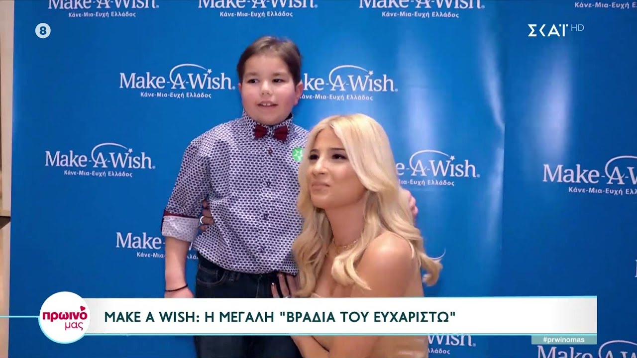 Το βράδυ της Τετάρτης 19 Μαρτίου, το Μέγαρο Μουσικής Αθηνών φιλοξένησε την εκδήλωση «Βραδιά του Ευχαριστώ», που διοργάνωσε το «Make a Wish (Κάνε Μια Ευχή Ελλάδας)». Η εκδήλωση τίμησε πρόσωπα και φορείς που στηρίζουν διαχρονικά το έργο του οργανισμού και συμβάλλουν στην εκπλήρωση ευχών παιδιών που παλεύουν με σοβαρές ασθένειες.