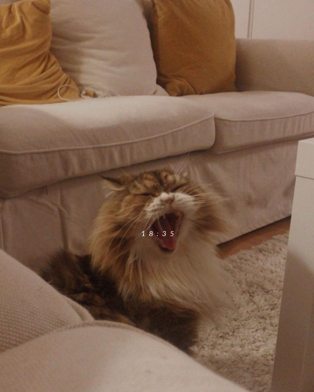 Η Μαρία έχει επιλέξει να ζει στο κέντρο της Αθήνας και το σπίτι της όπως μπορούμε να διακρίνουμε είναι φωτεινό, ζεστό , ευρύχωρο και το έχει διακοσμήσει με το σικ γούστο της. Στο σαλόνι υπάρχει ένας σικάτος μπεζ καναπές με μαξιλάρια σε κίτρινο και καφέ, ενώ ένα λευκό χαλί δένει αρμονικά τον χώρο.
