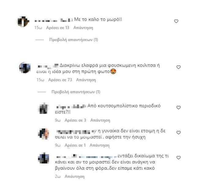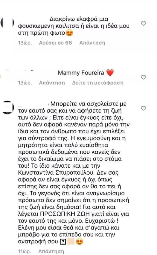 Αρκετοί ήταν εκείνοι που έσπευσαν να της ευχηθούν, ενώ υπήρχαν και κάποια σχόλια που υποστήριζαν ότι δε θα έπρεπε να ασχολούμαστε με ένα τόσο ευαίσθητο θέμα και πως αν η ίδια θέλει να ανακοινώσει κάτι, θα το κάνει όταν κρίνει η ίδια ότι είναι έτοιμη.