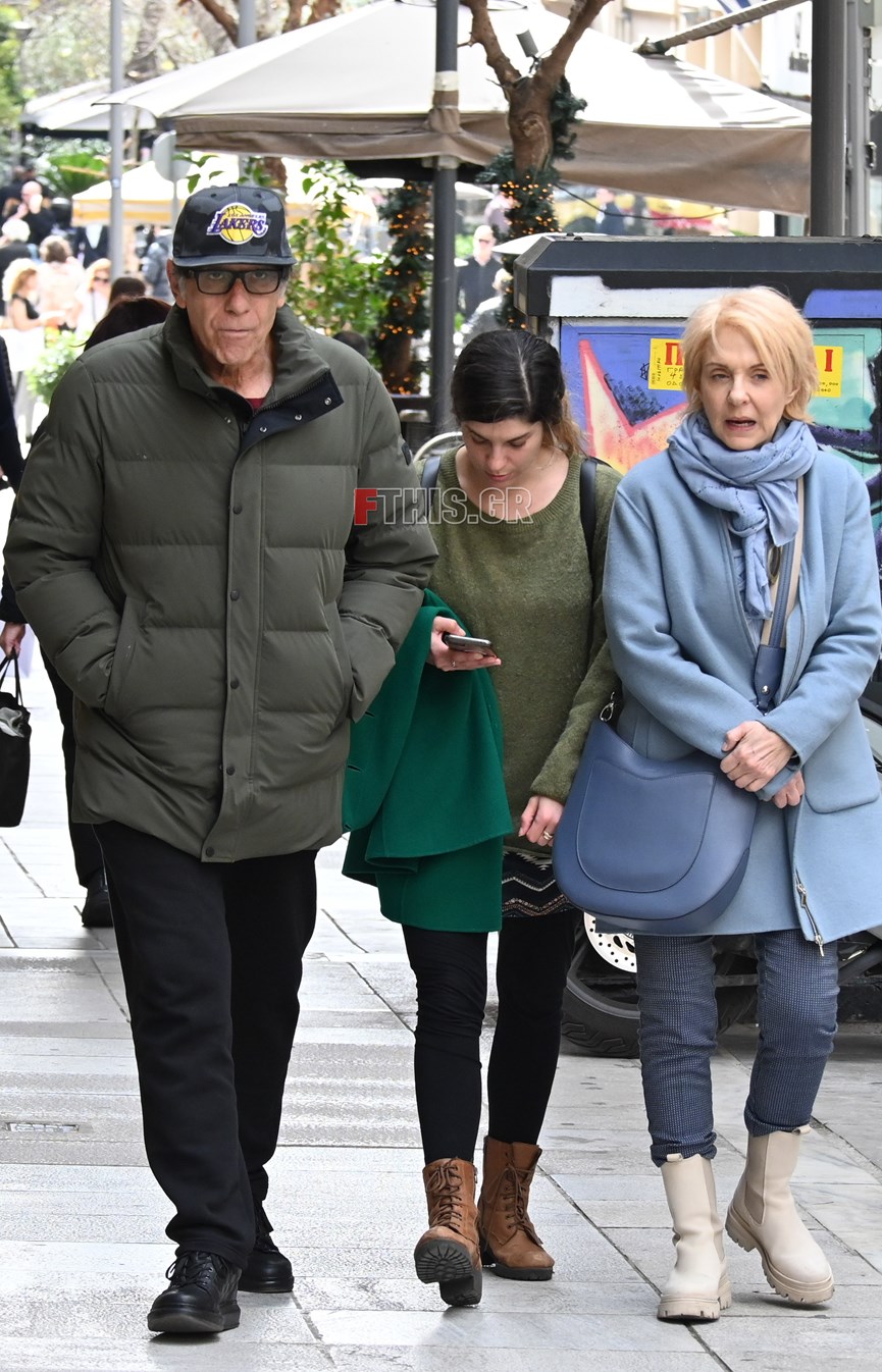 Μια σπάνια εμφάνιση πραγματοποίησαν ο Γιάννης Μπέζος και η Ναταλία Τσαλίκη, συνοδευόμενοι από την κόρη τους, Ηρώ, στο κέντρο της Αθήνας.